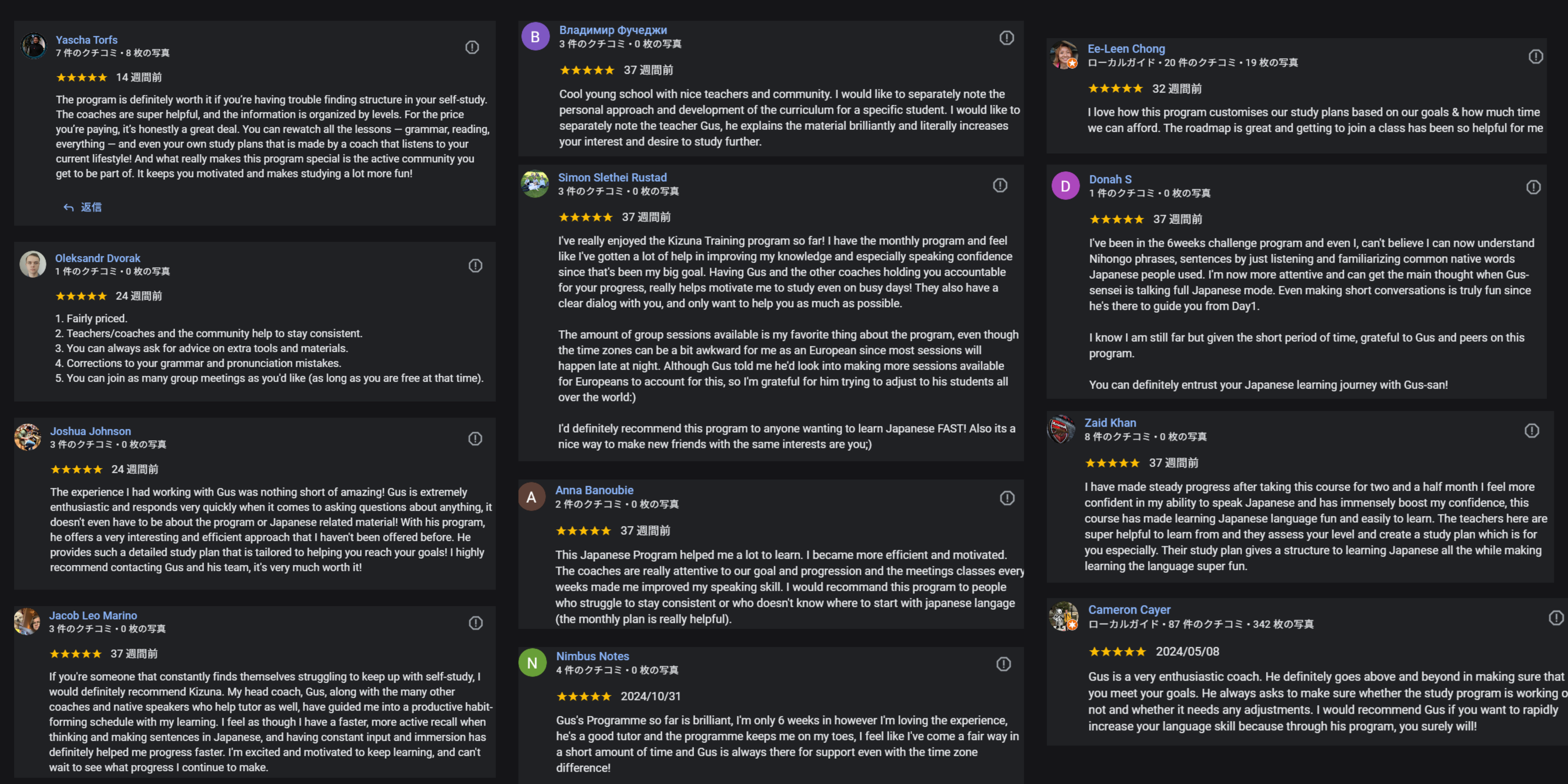 Japanese Accelerator includes one live coaching session with Gus each week. In this session, you’ll learn cutting-edge strategies of what’s working best right now and practical tools for unstoppable Japanese growth. These sessions will be laser-focused on you, your Japanese and its growth.